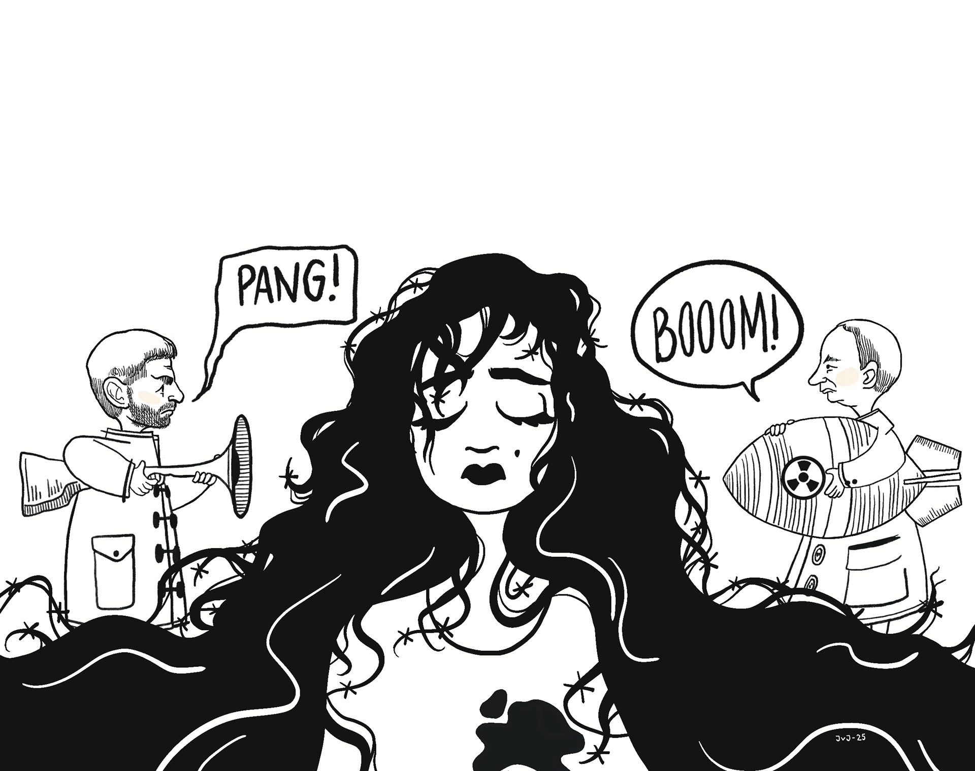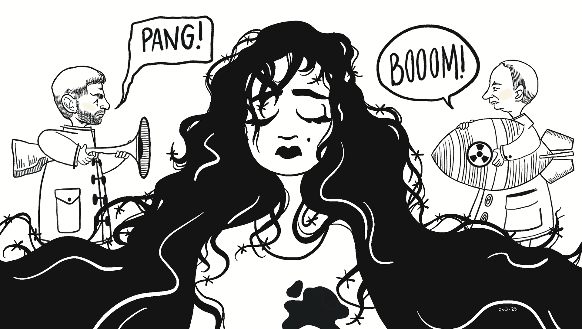En illustration till Svenska freds- och skiljedomsföreningens medlemstidning PAX.